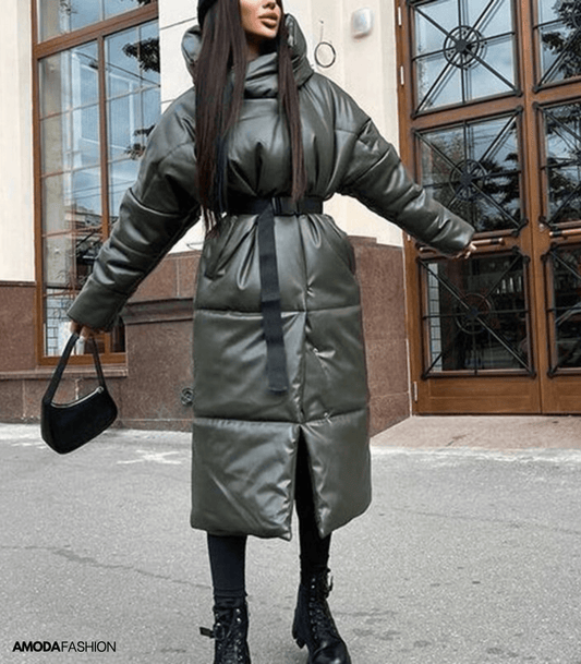 Lang leren pufferjack met riem