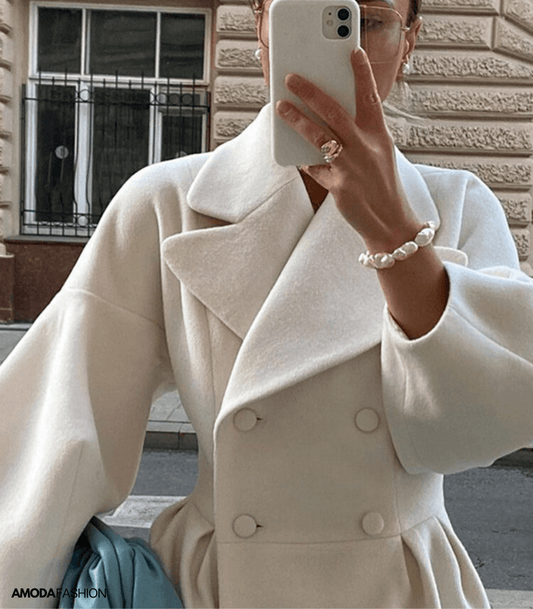 Lantaarnmouwen over jas met kraag