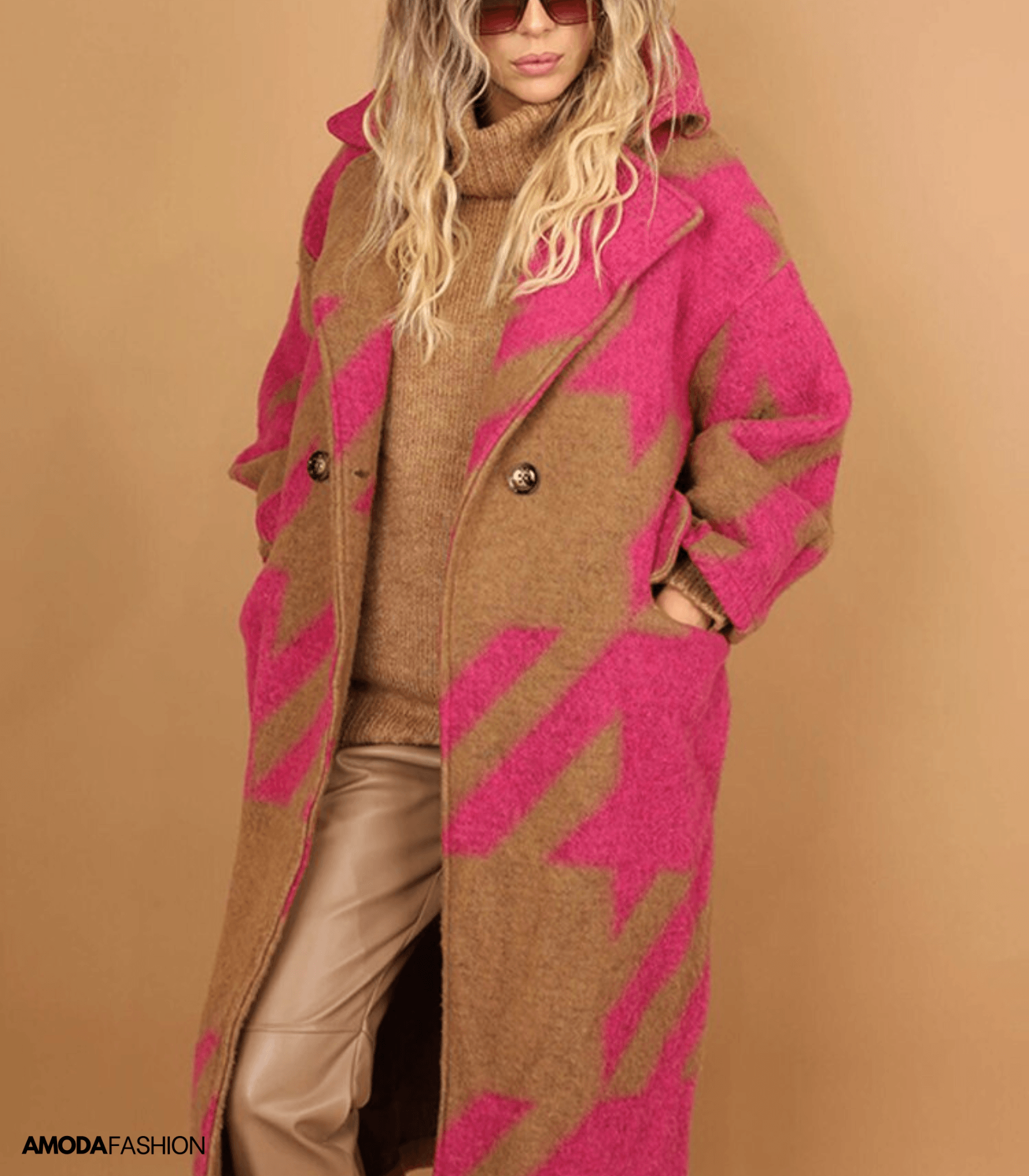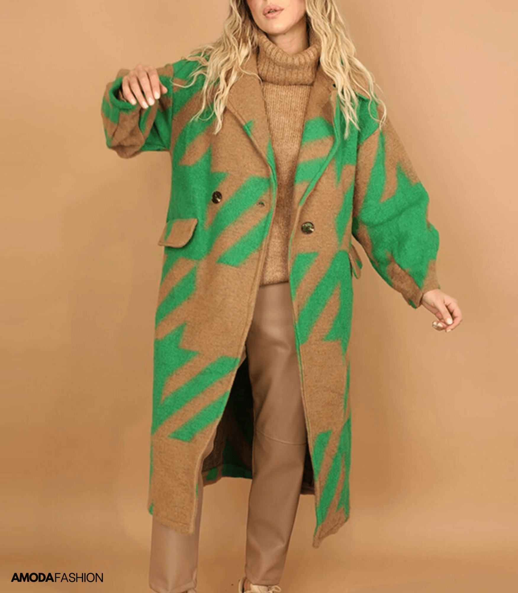 Dikke wollen jas met opdruk en zakken