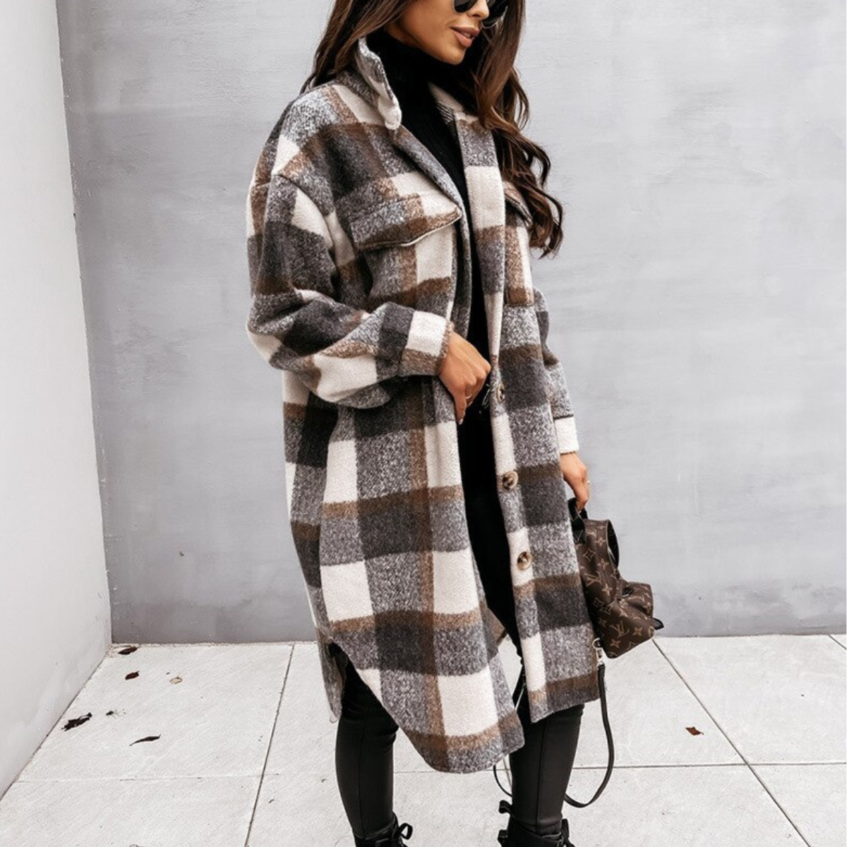 Ember - De beste lange wollen jas met een ruitjespatroon