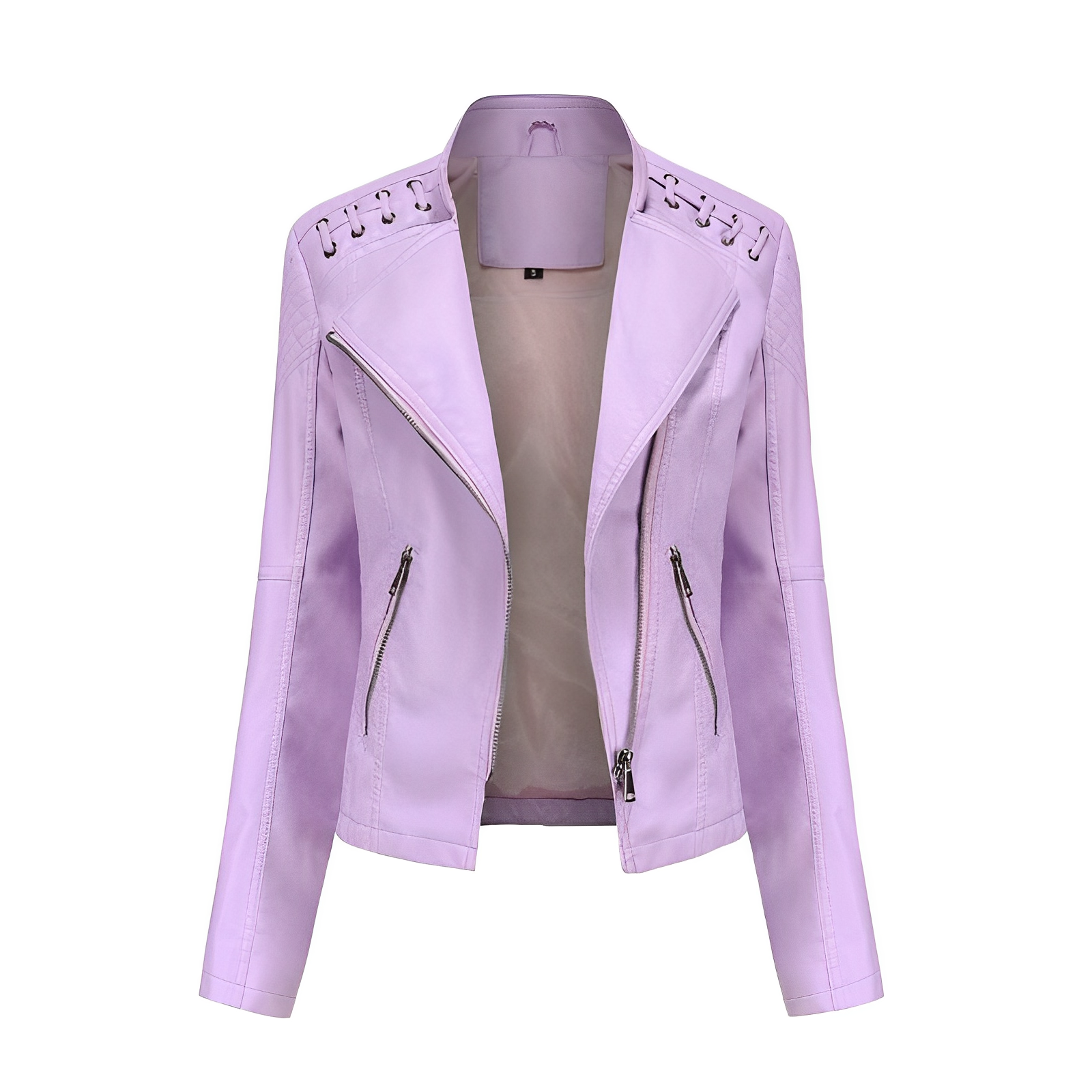 De details zijn zorgvuldig gemaakt, van de ton-sur-ton voering tot de metalen ritsen en studs die het jack een moderne en verfijnde touch geven. Of het nu gedragen wordt met een rok of broek, Dalia is een echte blikvanger en past bij bijna elke outfit.