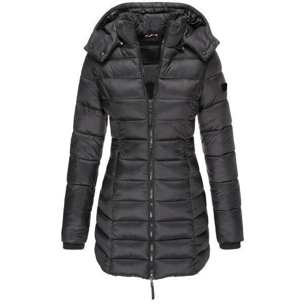 Verhoog je winterlook met onze halflange jas van warm katoen - de perfecte mix van mode en warmte.